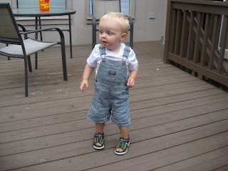 The fourth of July weekend was perfect in my books. It was mellow and low key, a good mix of immediate family time with dh and Charlie, as well as extended family time. I even had some cousins come in from DC and the country Jordon! As far as the actual day, fireworks have been cancelled here for 2 years in a row due to the economy. Since they are well after Charlie's bedtime, we didn't mind. We recorded them and watched them on tv the next night! :) Also, big fireworks are illegal, but I usually keep my distance from those anyways. We did poppers on the back deck while grilling. It was so cute to see Charlie try to step on them a few times before finally making them "pop". I've included a pic and a video.